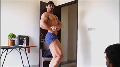 Two horny gay guys hires a handsome fitness trainer with hidden horny desires .
